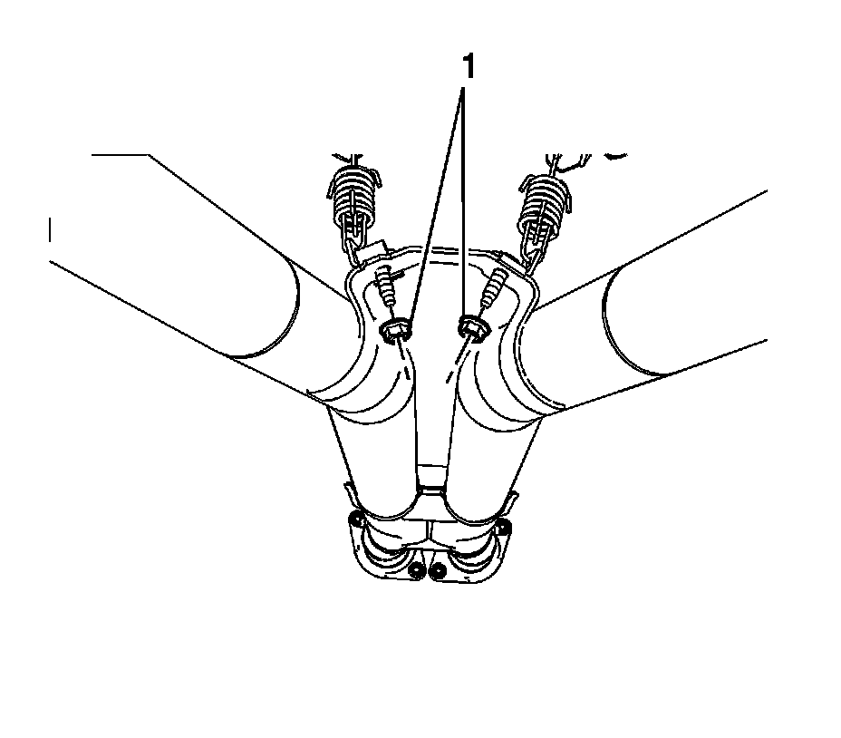 5. Remove the exhaust pipe hanger lower nuts (1).