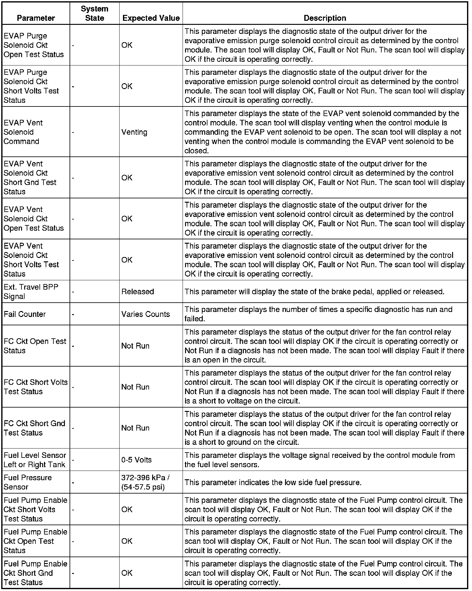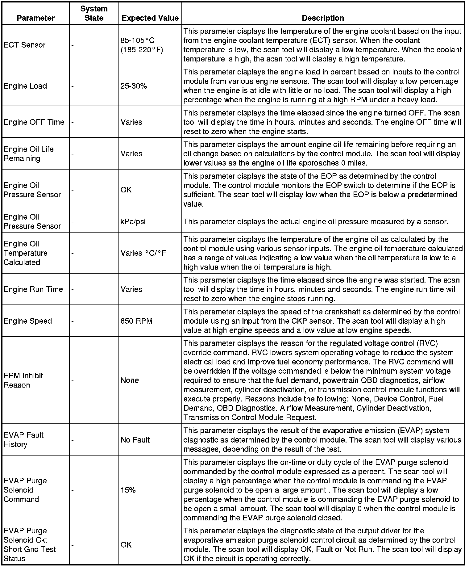The Engine Control Module Scan Tool Data List contains all engine-related parameters that are available on the scan tool. The list is arranged in alphabetical order. A given parameter may appear in any one of the data lists, and in some cases may appear more than once, or in more than one data list in order to group certain related parameters together.