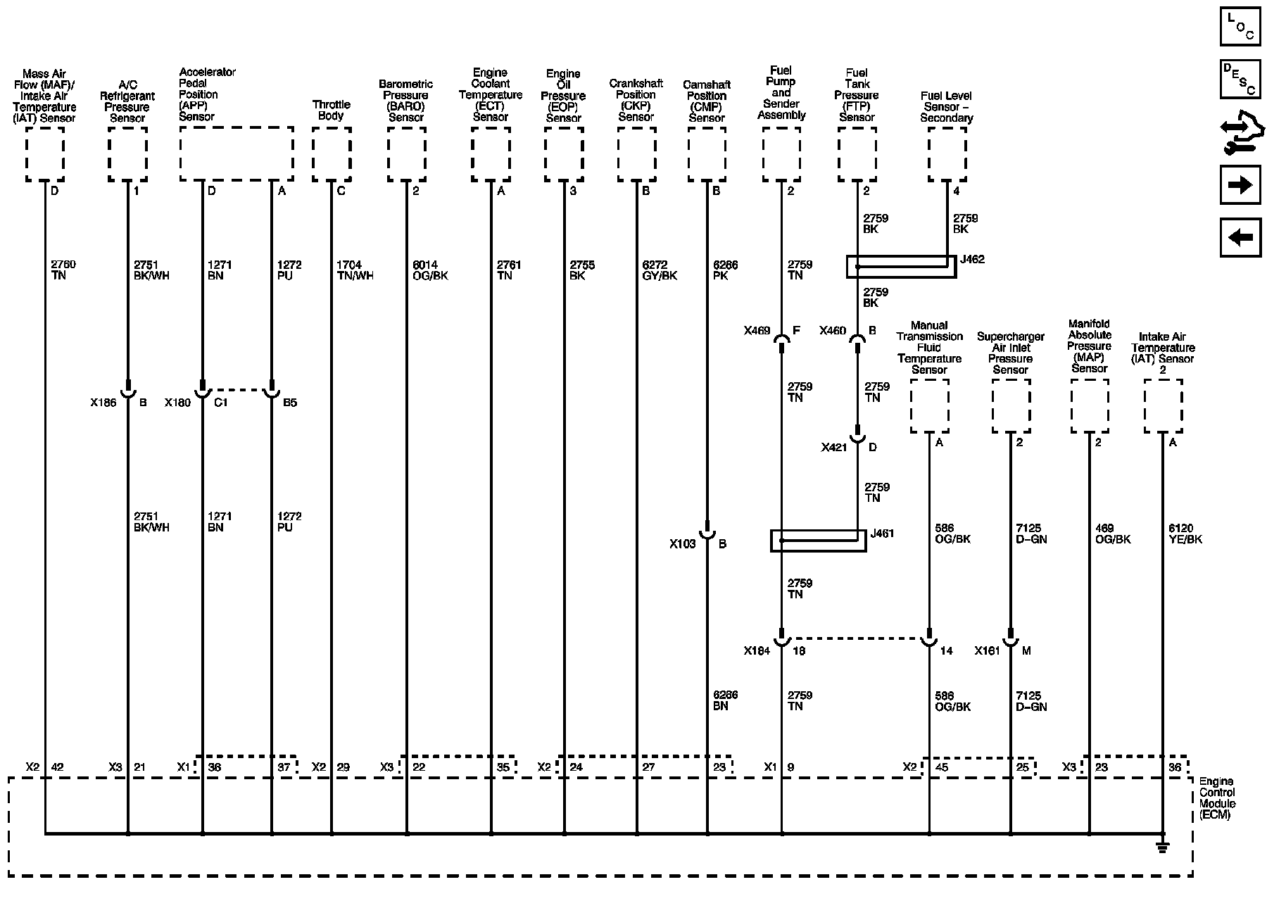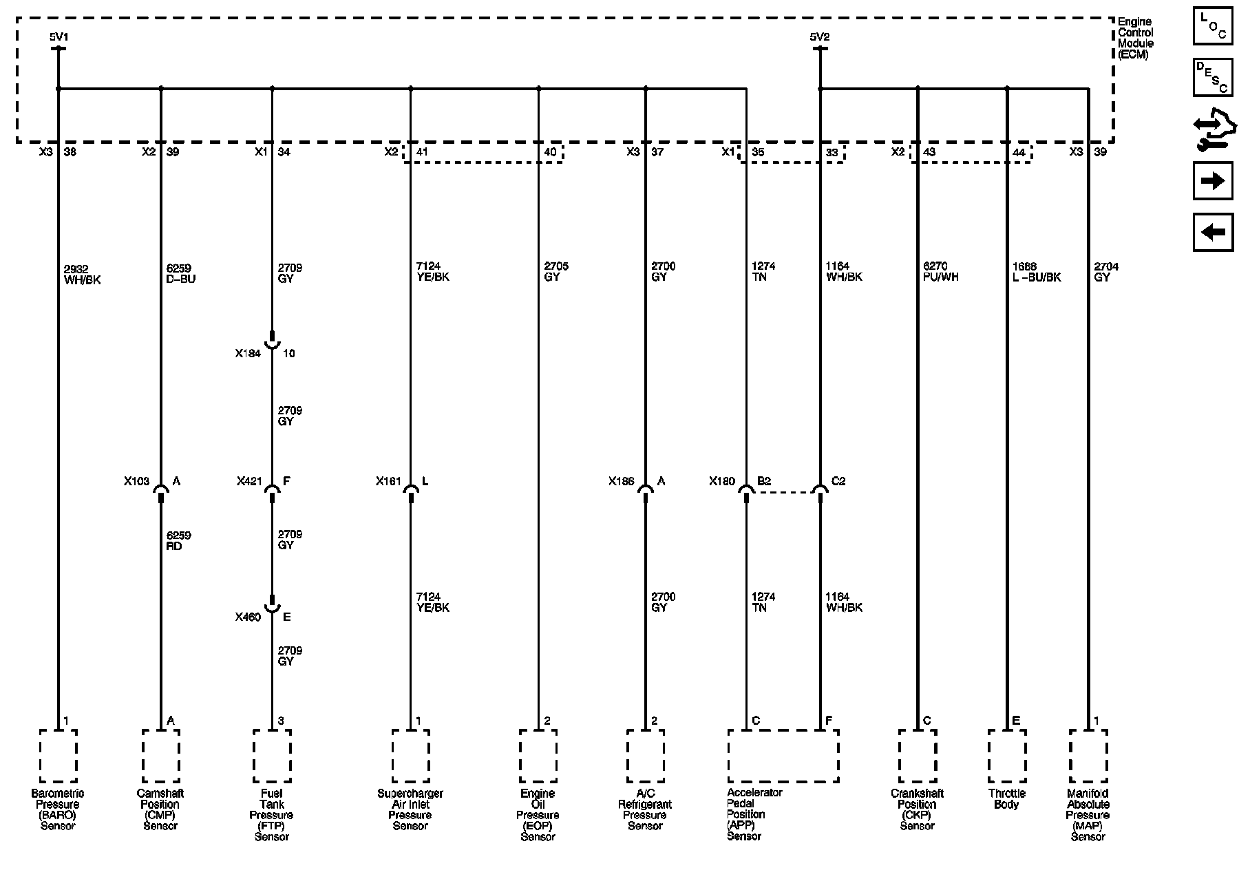 BARO, ECT, IAT 2, MAF/IAT, MAP, and Supercharger Air Inlet Pressure Sensors