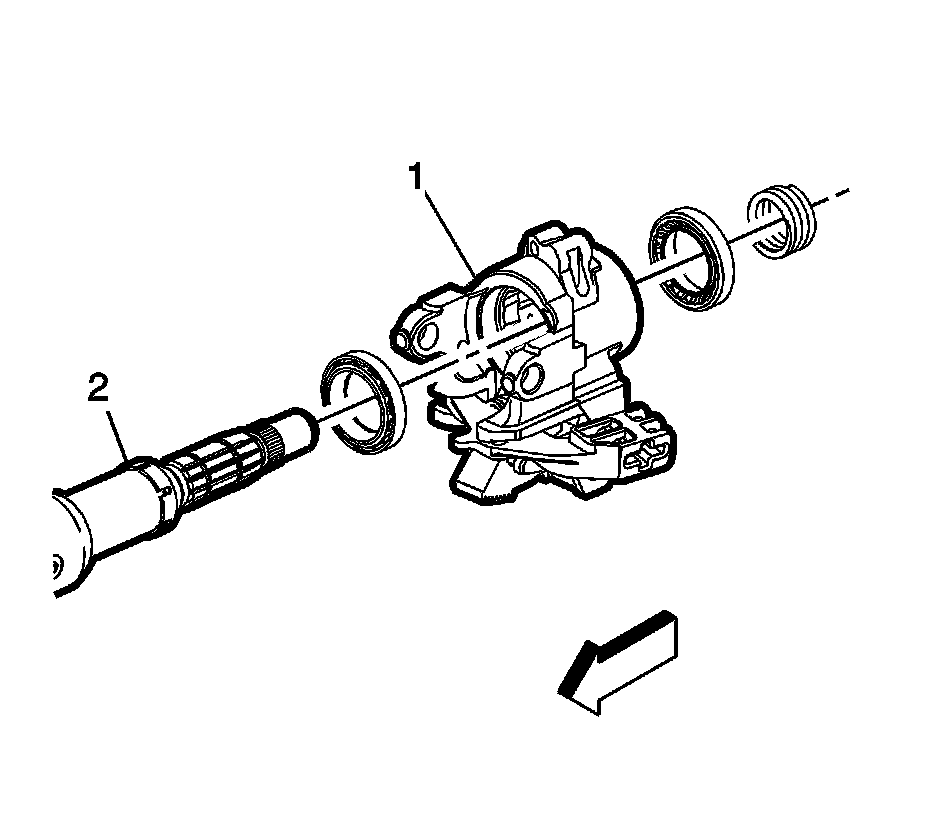 2. Install the steering shaft assembly (2) and steering column housing as an assembly to the steering column jacket.