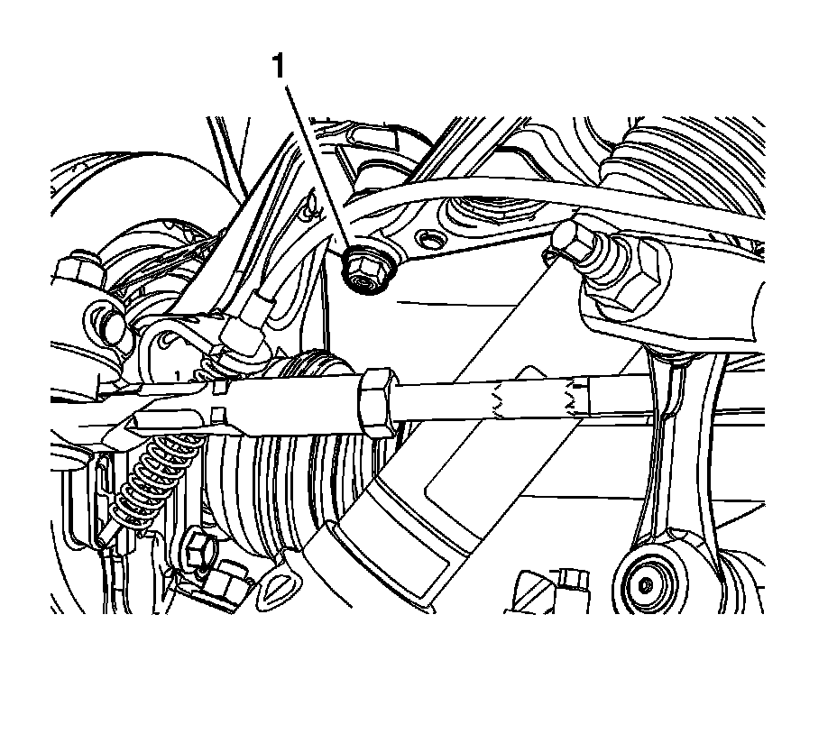 11. Loosen the upper control arm ball joint nut (1).