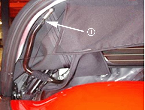 Adjust/roll the folding top forward by adjusting the lower B-pillar stop: