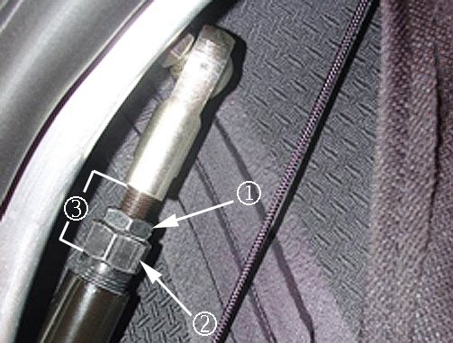 3. Loosen the adjuster jamb nut (2).
