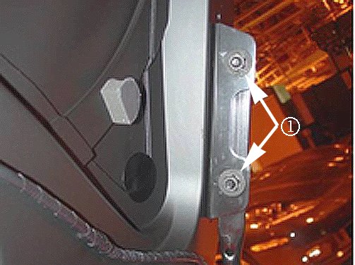 2. Adjust the tonneau by loosening the nuts (1) that attach the tonneau hinge to the "L-bracket."