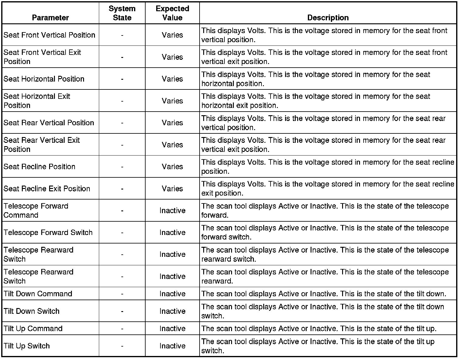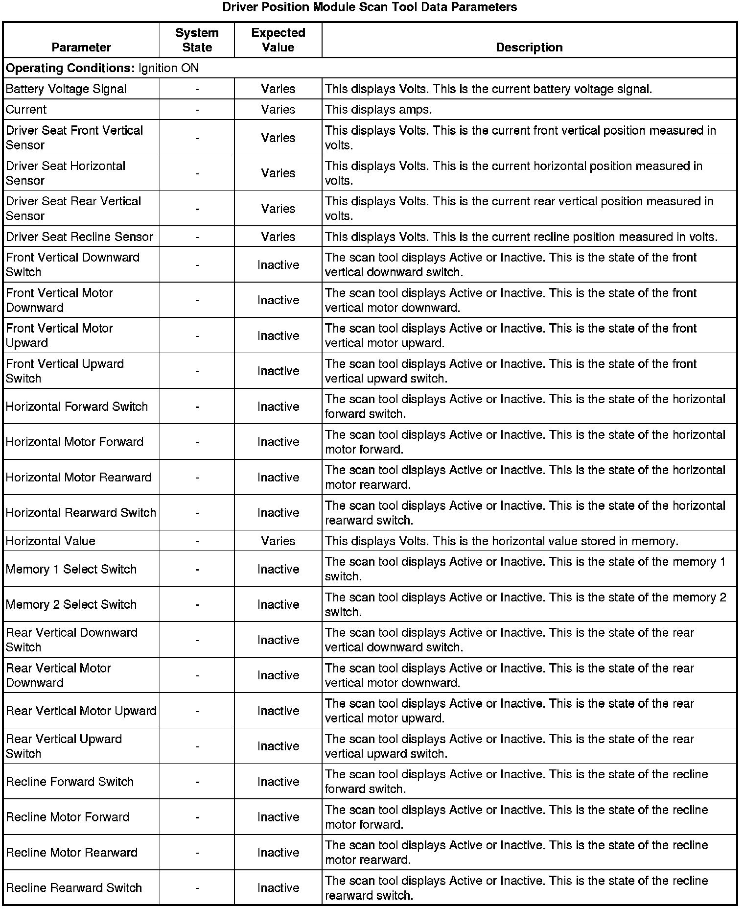 Driver Seat Adjuster Memory Module Scan Tool Information