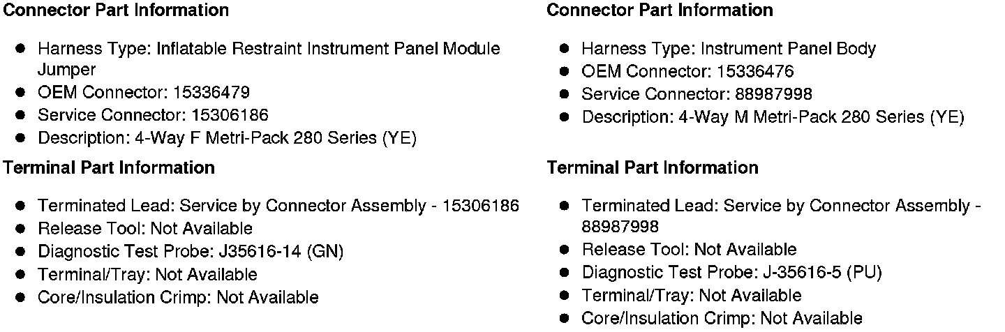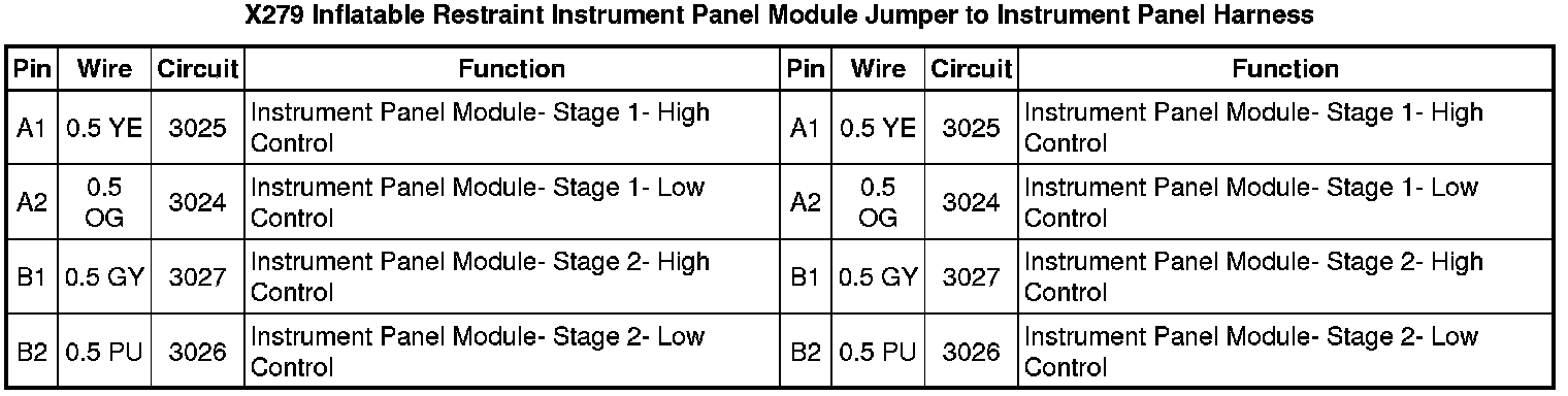X279 Inflatable Restraint Instrument Panel Module Jumper to Instrument Panel Harness