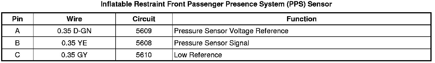 Inflatable Restraint Front Passenger Presence System (PPS) Sensor
