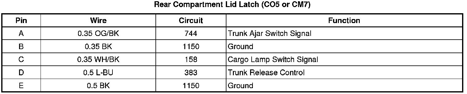 Rear Compartment Lid Latch (CO5 or CM7)