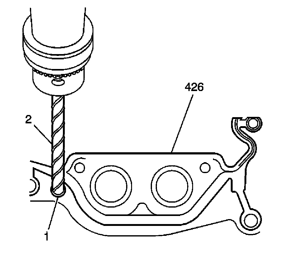 5. Drill (2) out the oil pan gasket retaining rivets (1), if required.
