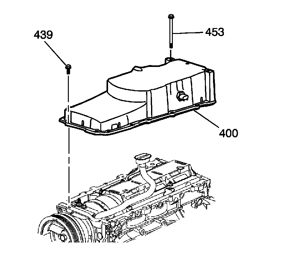 3. Remove the oil pan bolts (439, 453).
