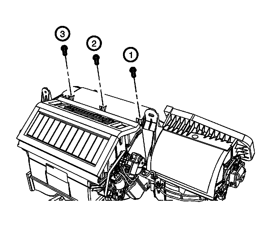 6. Reposition the HVAC module to install the mode valve screw (3).