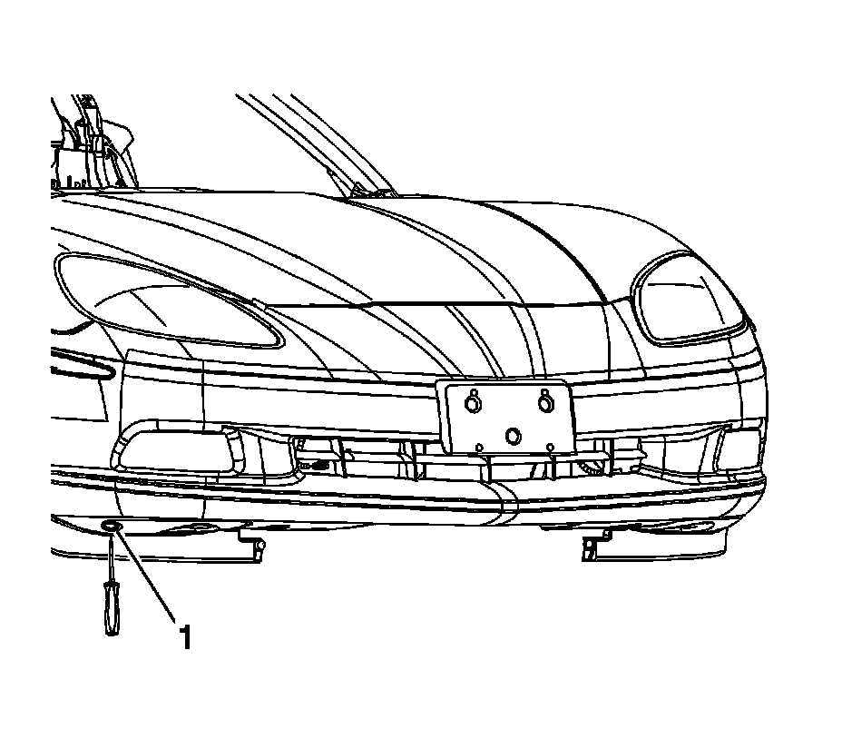 3. Insert a TORX(R) driver under the front fascia extension in order to reach the fog lamp vertical adjustment screw from the bottom side of the vehicle.