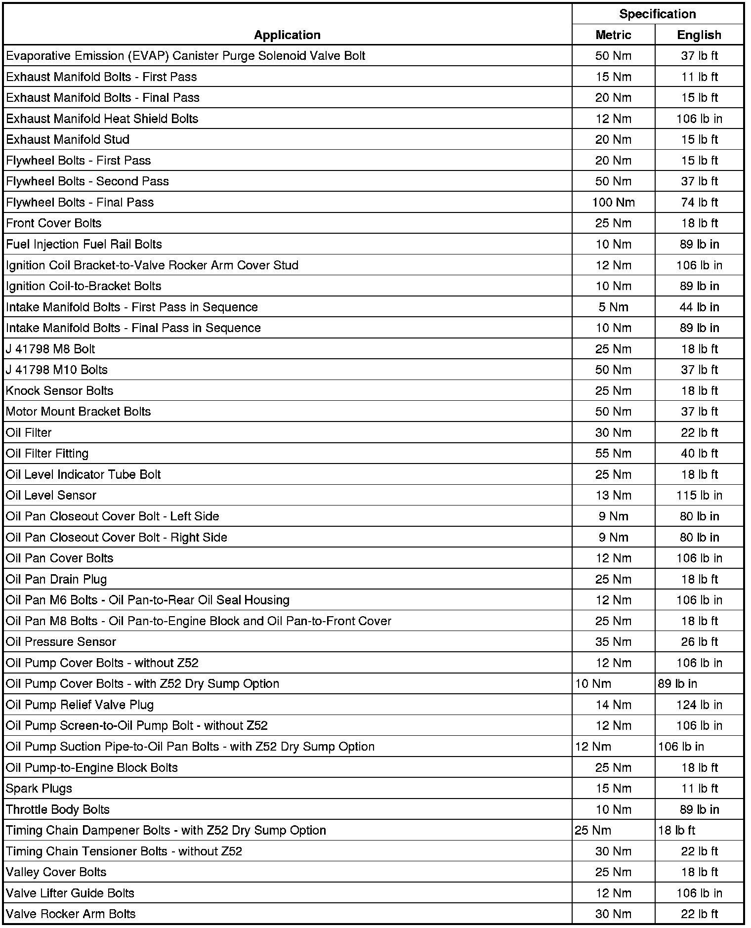 Fastener Tightening Specifications (6.2L LS3)