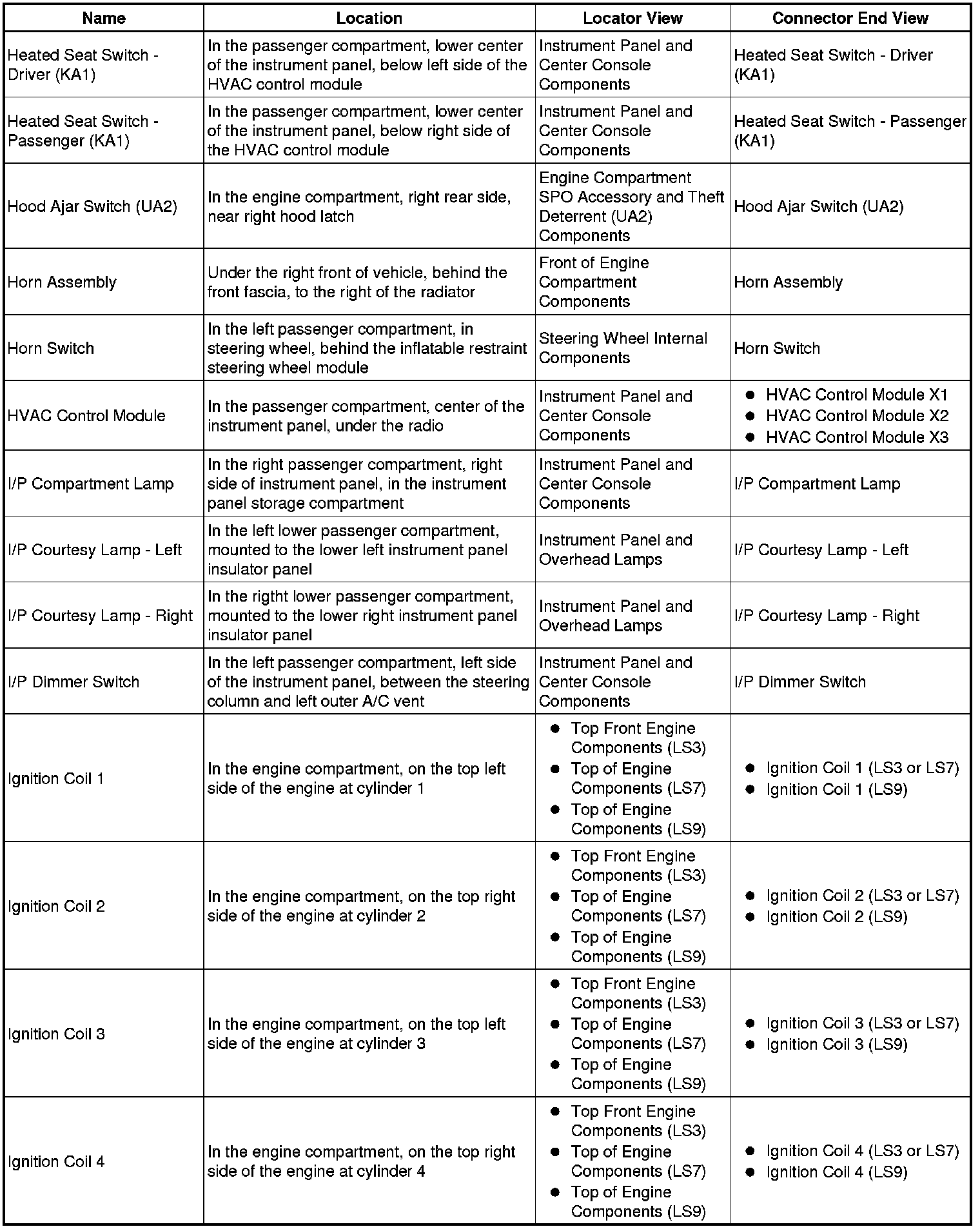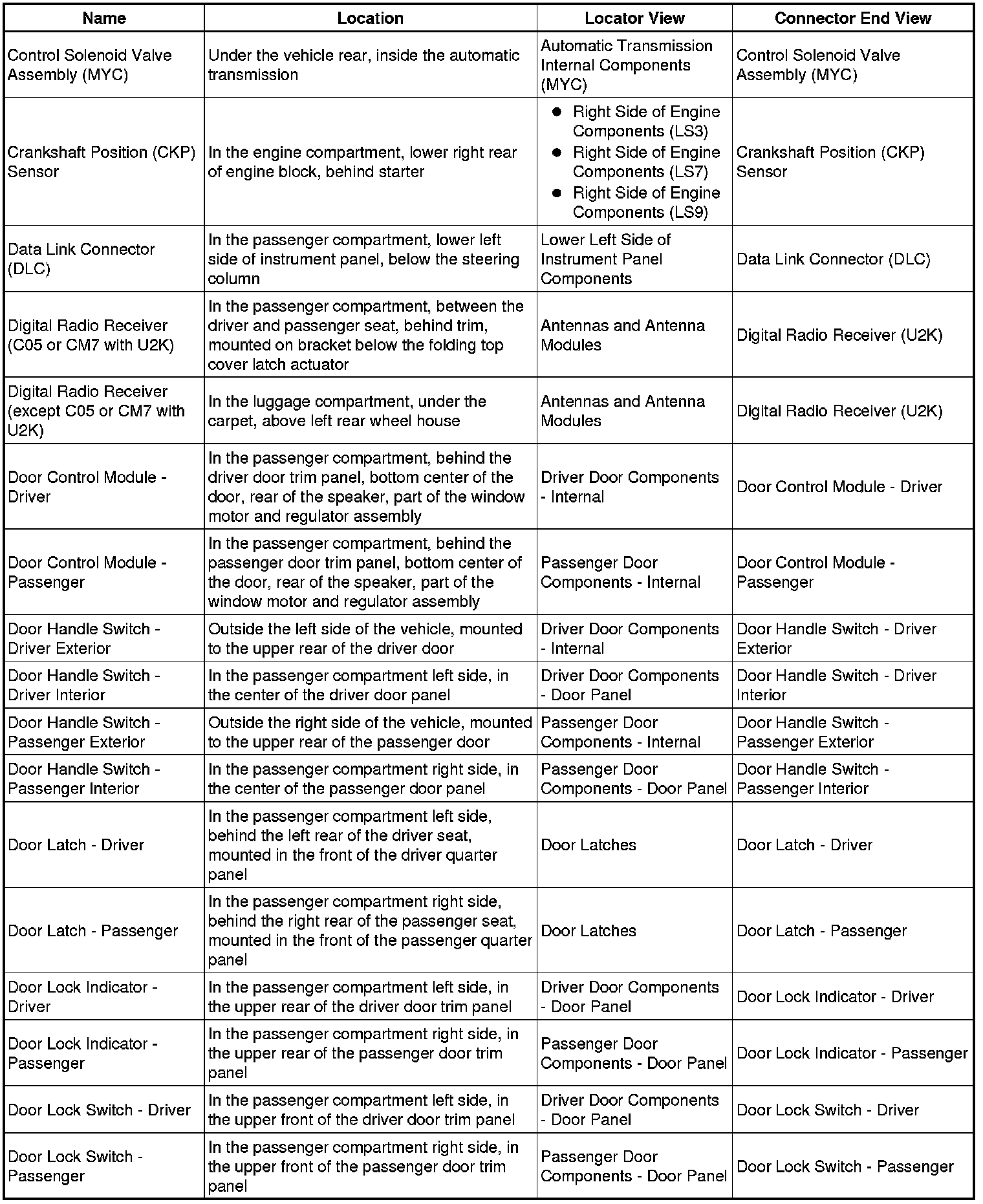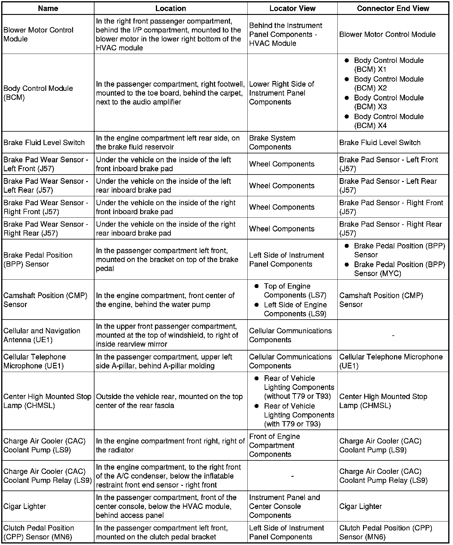 Master Electrical Component List