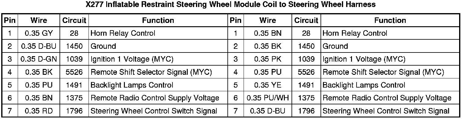 X277 Inflatable Restraint Steering Wheel Module Coil to Steering Wheel Harness
