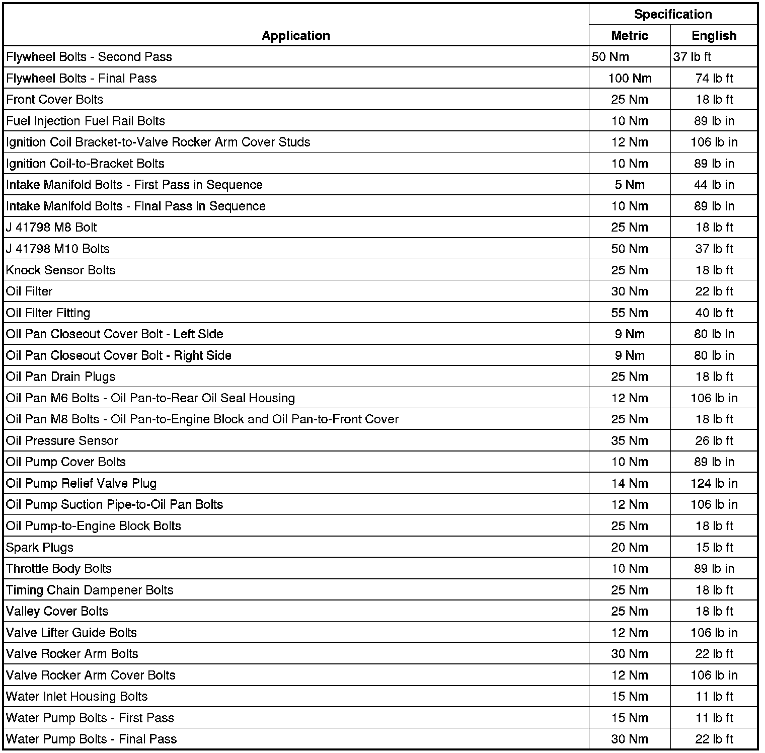 Fastener Tightening Specifications (7.0L LS7)