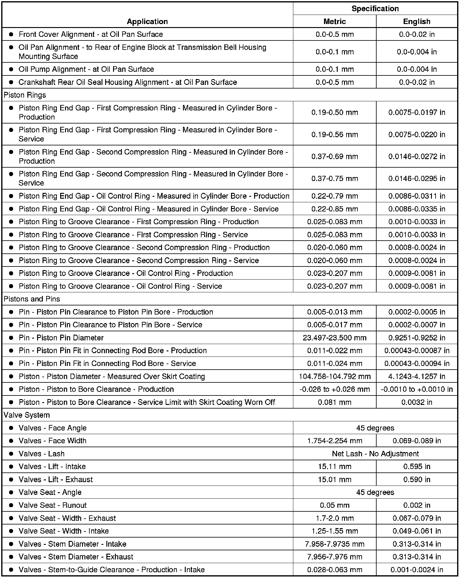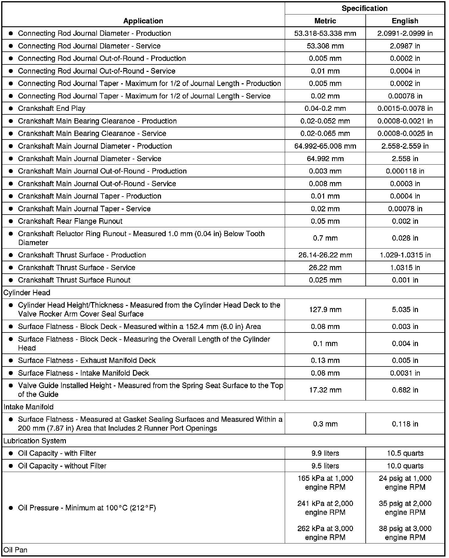 Engine Mechanical Specifications (7.0L)