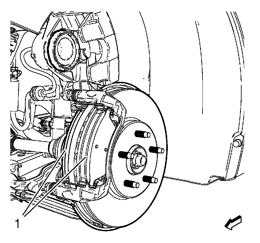 8. Remove the brake pads (1) from the caliper mounting bracket