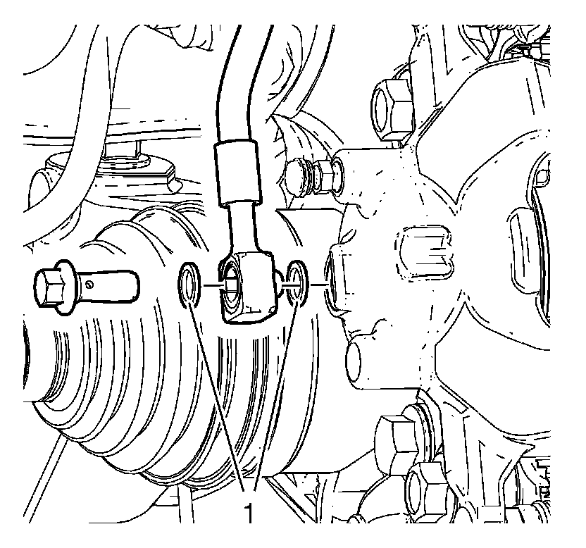 2. Install NEW copper brake hose washers (1) to the brake hose-to-caliper bolt and to the brake hose.
