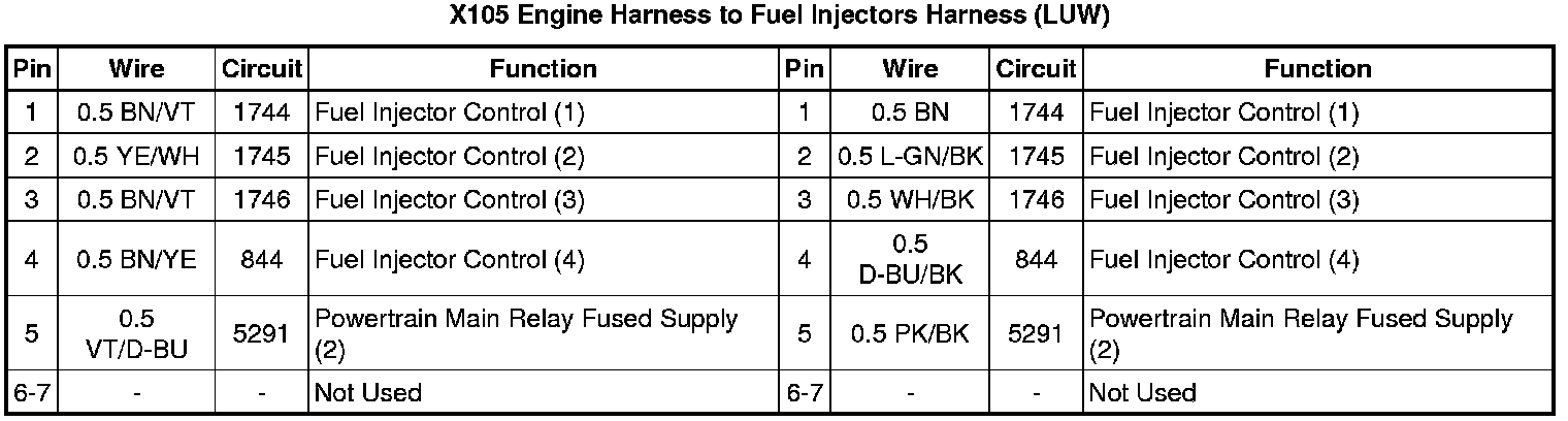 X105 Engine Harness to Fuel Injectors Harness (LUW)