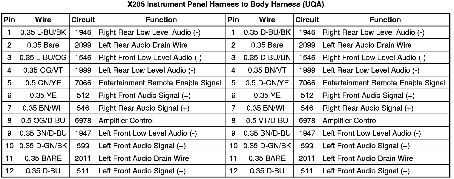 X205 Instrument Panel Harness to Body Harness (UQA)