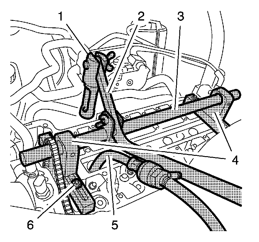 4. Position the mounting shaft centered above the spark plug bores and tighten the 4 fasteners (6).