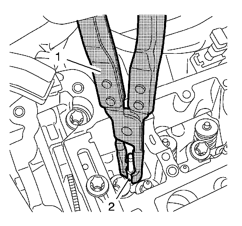 1. Apply tension to the valve springs, using the EN-6086-7 - lever (1) and the EN-6086-11 - demounting piece (2) until the valve keys are discharged from spring load and remove the valve keys.