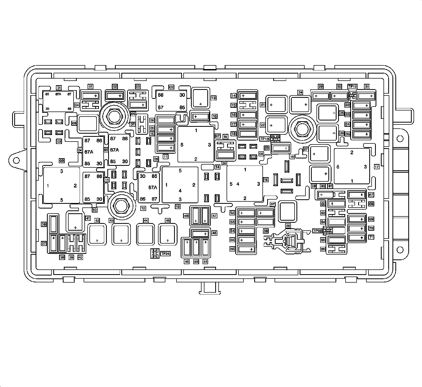 X50A Fuse Block - Underhood Top View