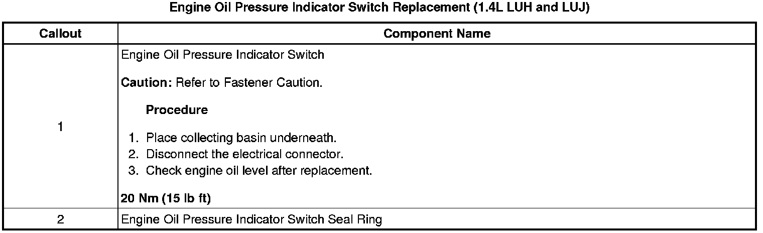 Engine Oil Pressure Indicator Switch Replacement (1.4L LUH and LUJ)