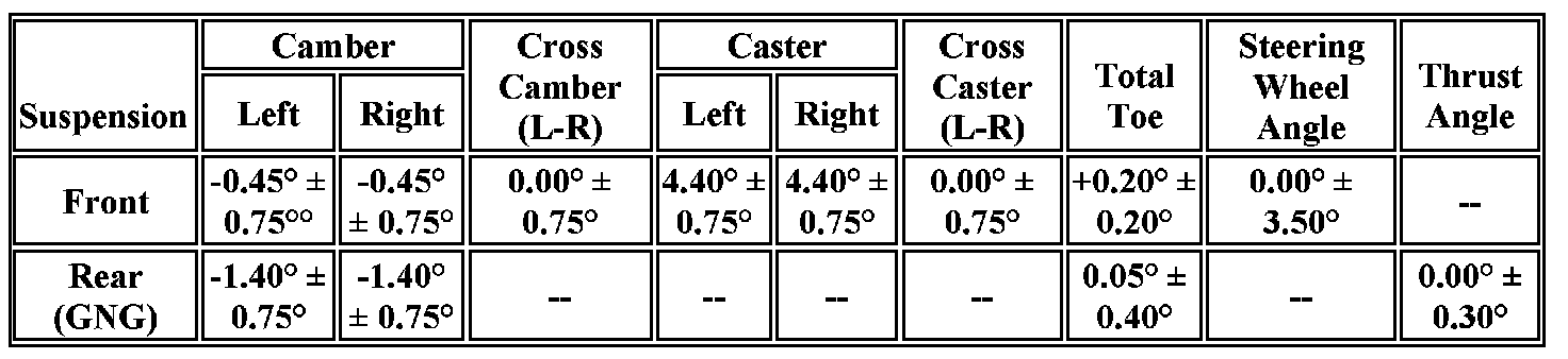 Wheel Alignment Specifications