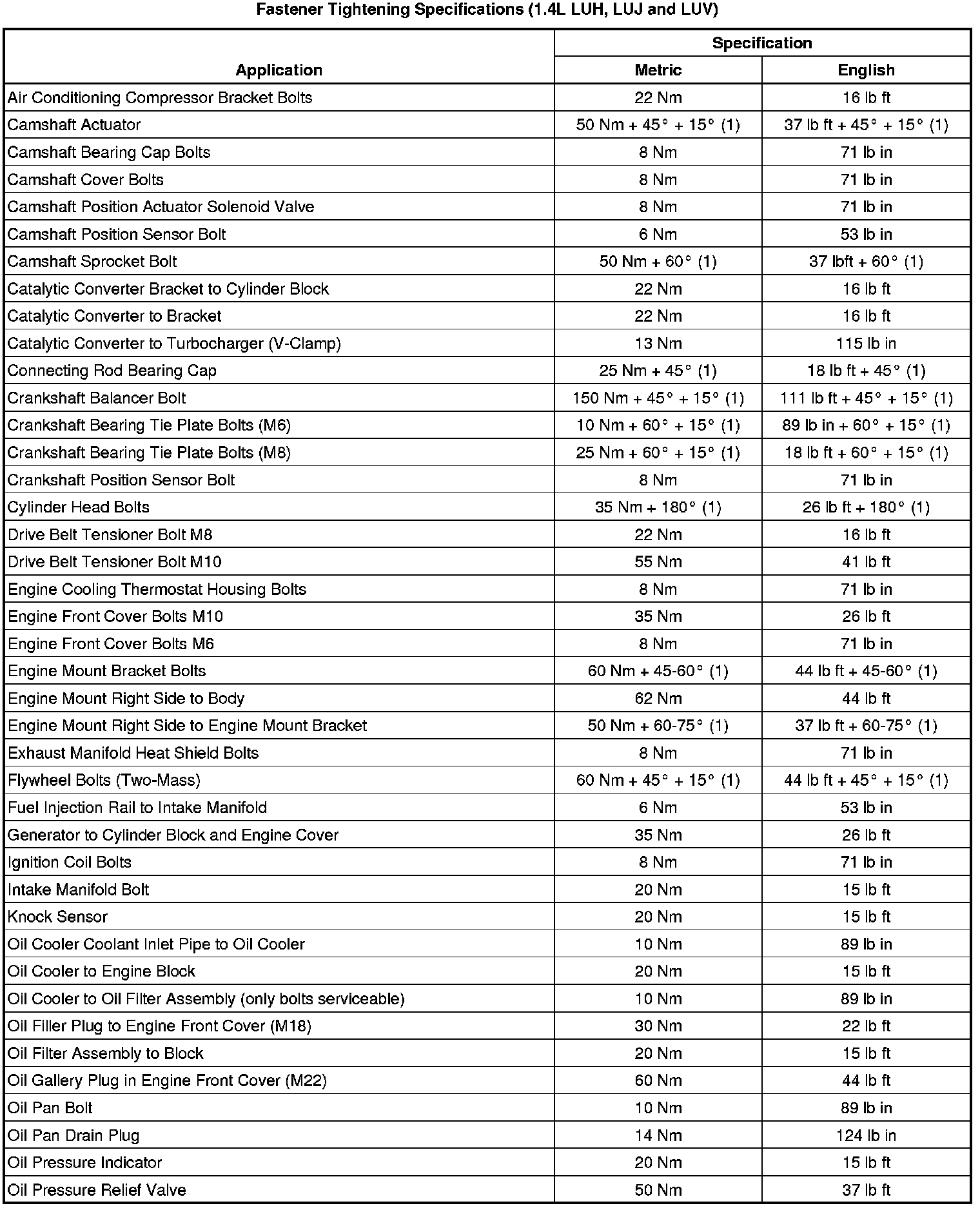 Fastener Tightening Specifications (1.4L LUH and LUJ)
