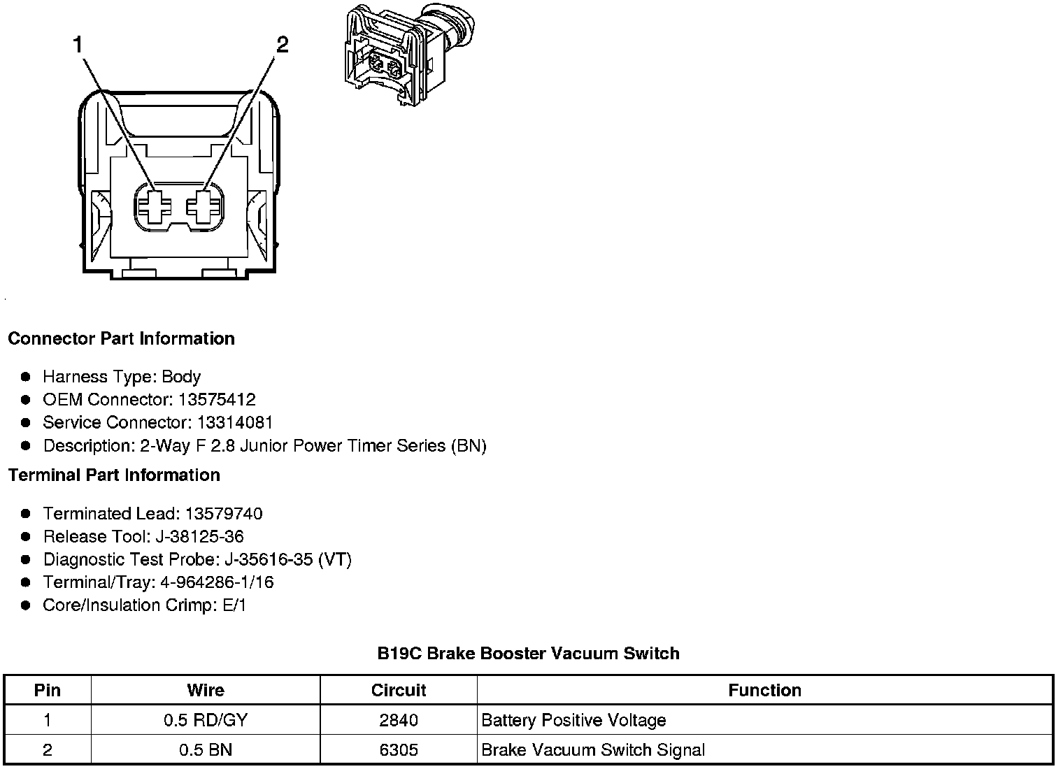 B19C Brake Booster Vacuum Switch