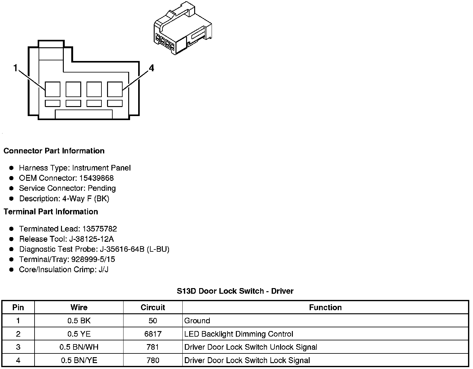 S13D Door Lock Switch - Driver