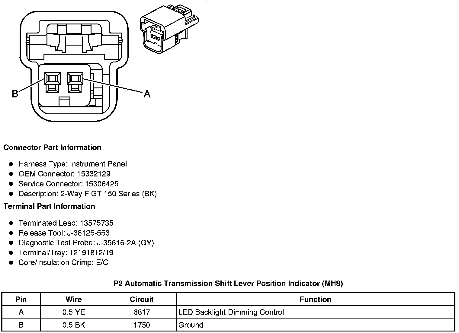 P2 Transmission Shift Lever Position Indicator (MH8)