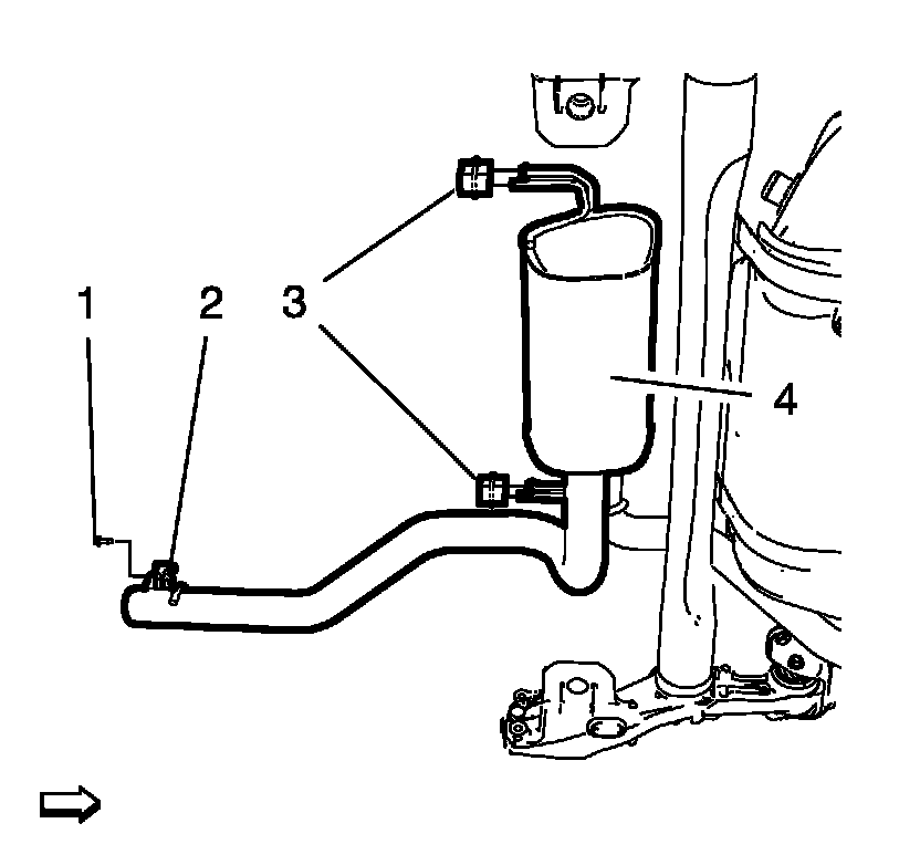 2. Remove the 2 exhaust rear muffler hanger insulators (3) from the exhaust rear muffler (4).