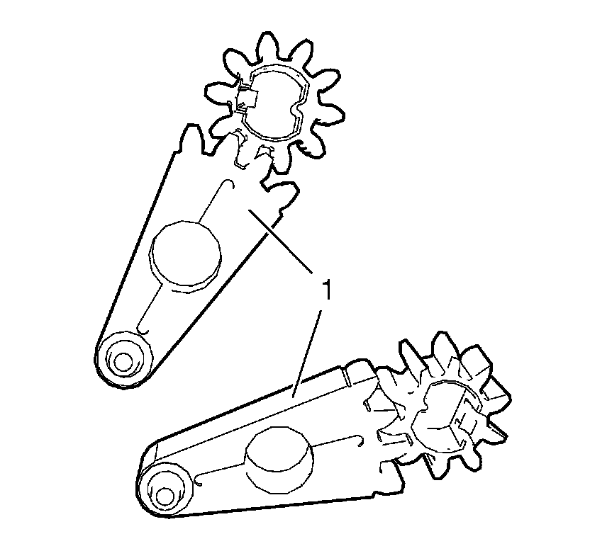 2. Make sure that mode valve gears of valve vent levers (1) are fitted as shown in graphic above