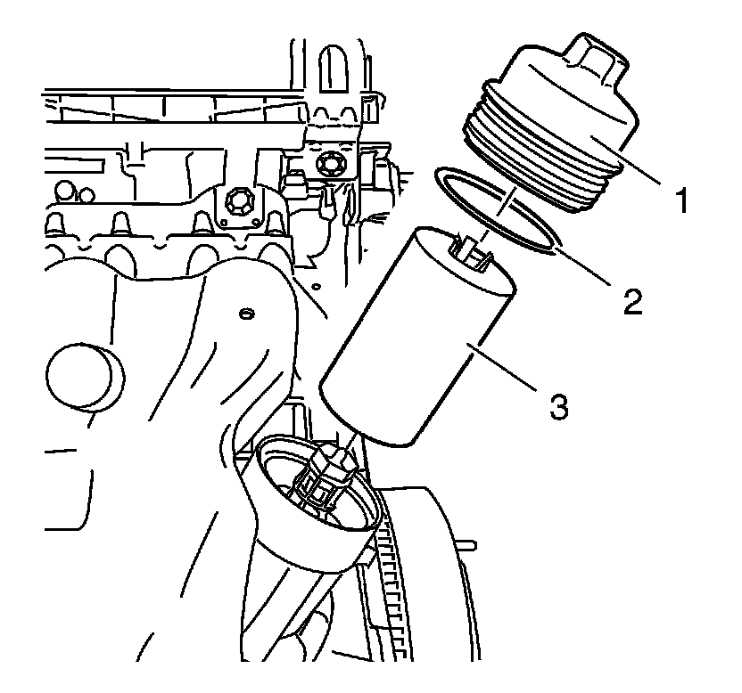 3. Remove the oil filter cap (1).