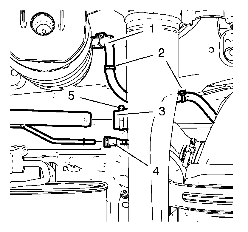 7. Connect the fuel tank filler vent pipe connector (4) to the fuel tank filler vent pipe. Refer to Plastic Collar Quick Connect Fitting Service Procedures.