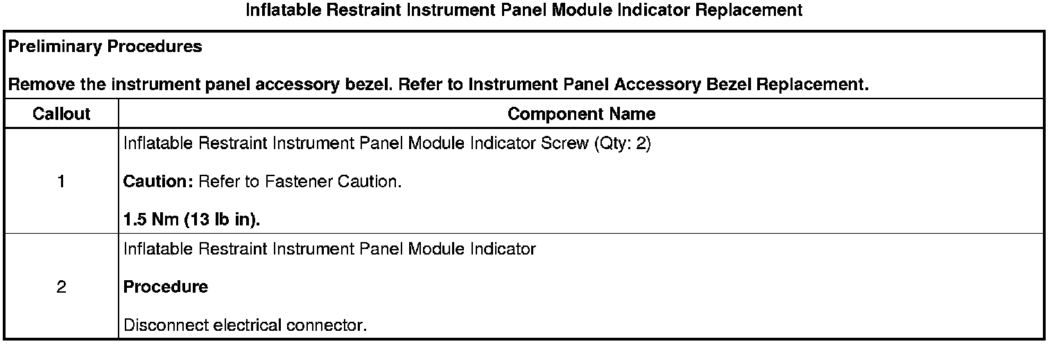 Inflatable Restraint Instrument Panel Module Indicator Replacement