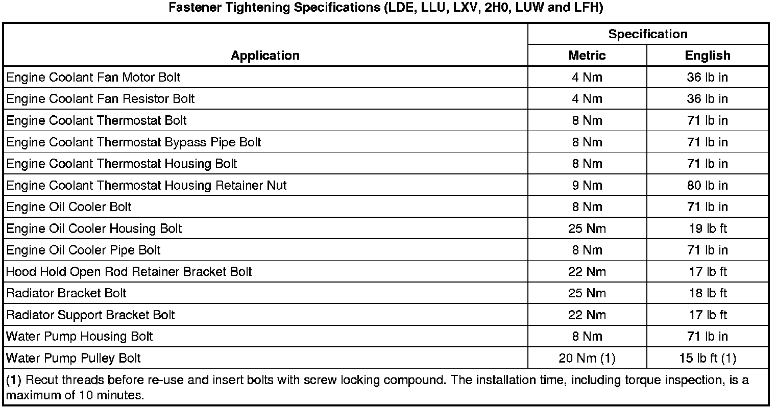Fastener Tightening Specifications (LDE, LLU, LXV, 2H0, LUW and LFH)