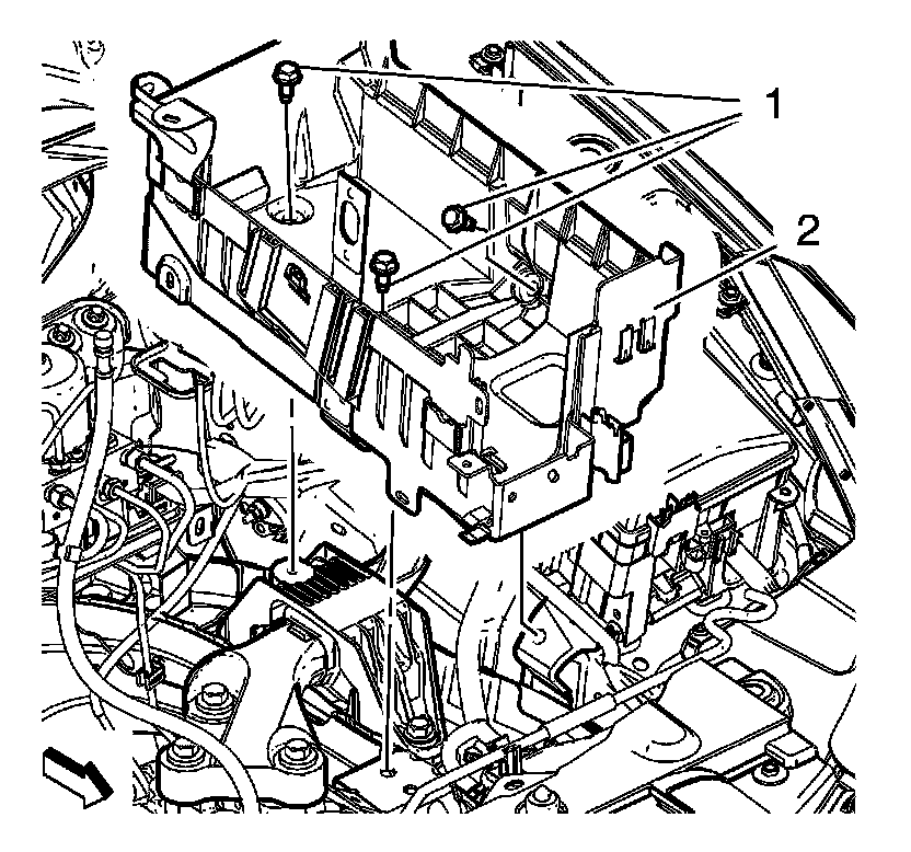 2. Install the 3 battery tray bolts (1) and tighten to 15 Nm (11 lb ft).
