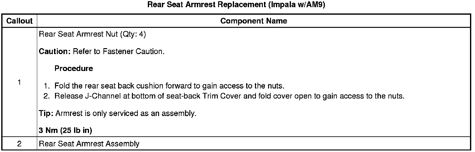 Rear Seat Armrest Replacement (Impala w/AM9)