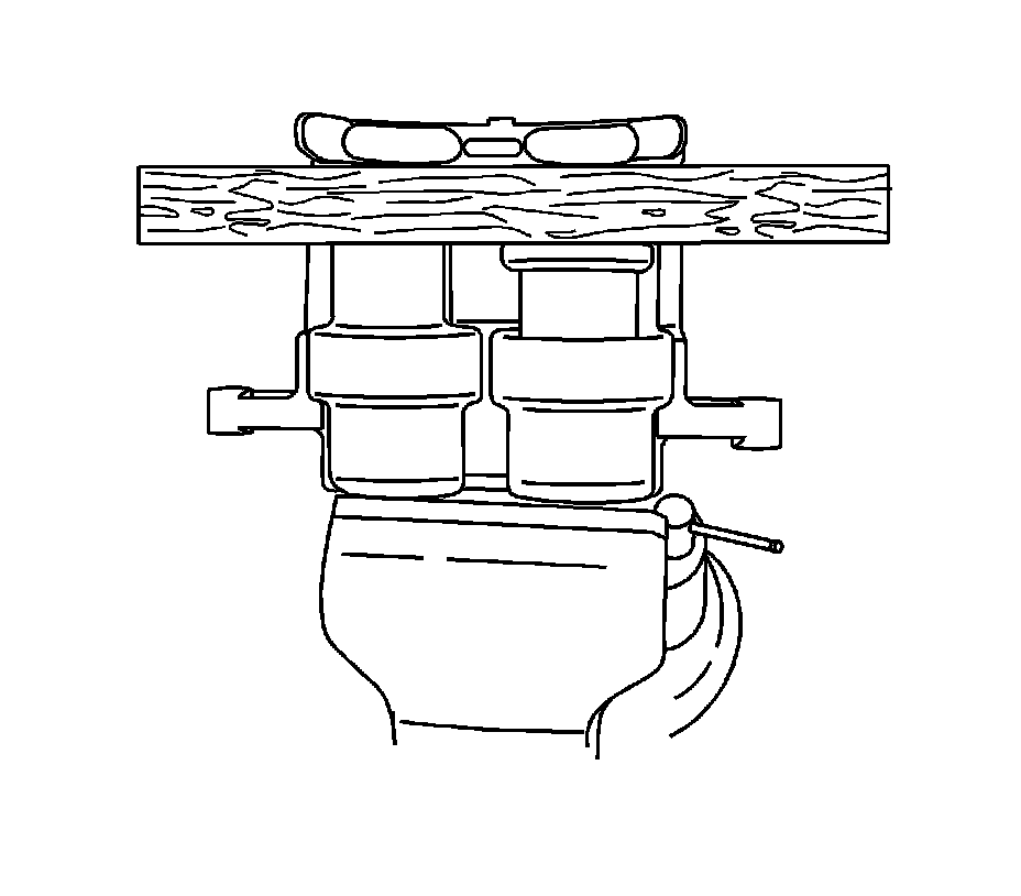3. Position a second block of wood in front of the piston that remains in the brake caliper.