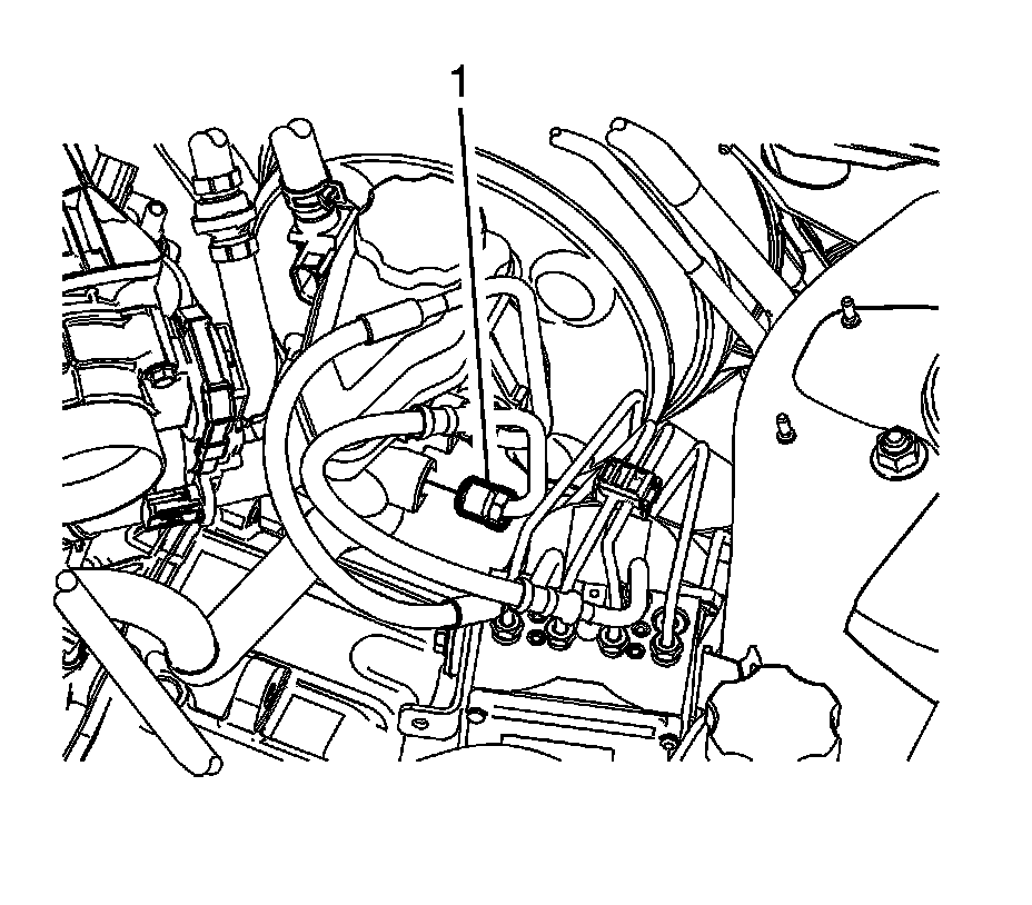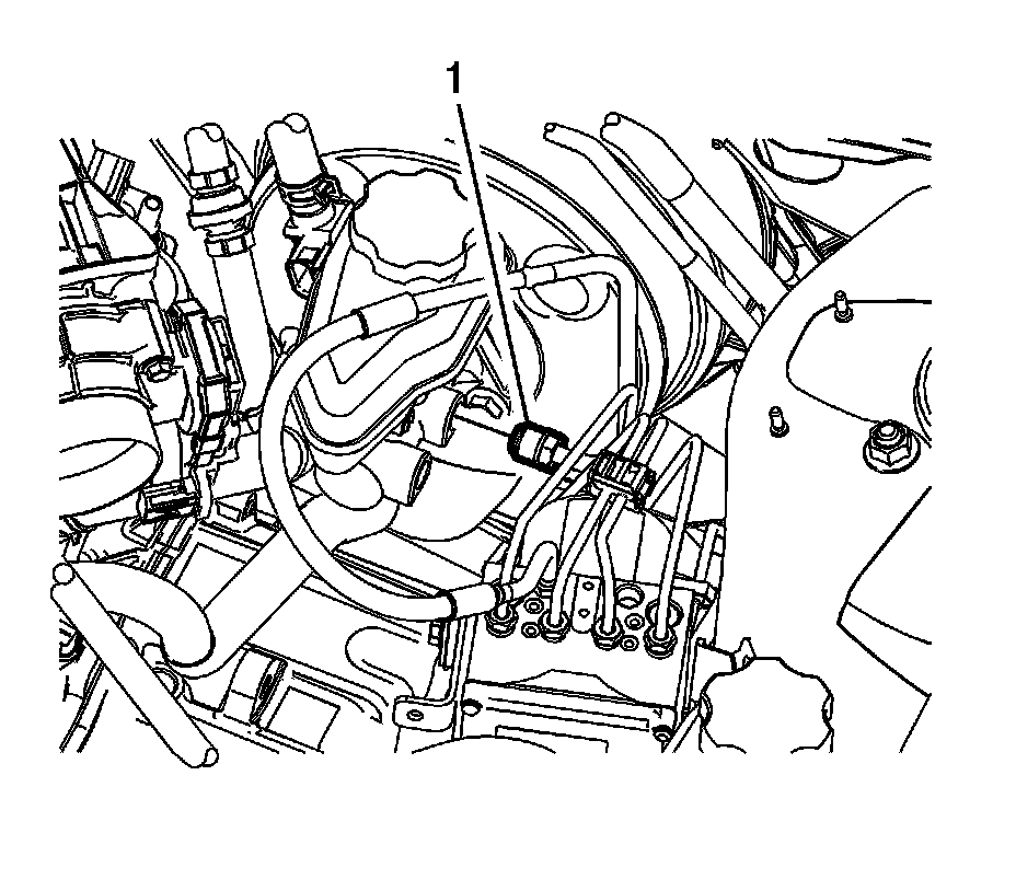 5. Disconnect the master cylinder primary brake pipe fitting (1).