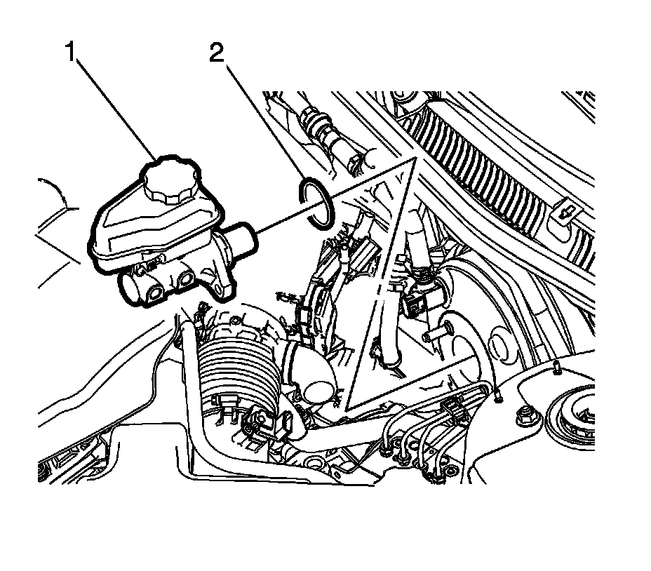 2. Install the master cylinder (1) and the master cylinder seal (2).