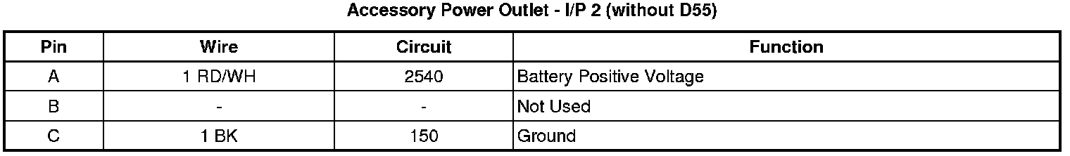 Accessory Power Outlet - I/P 2 (without D55)