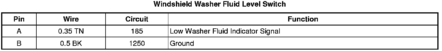 Windshield Washer Fluid Level Switch