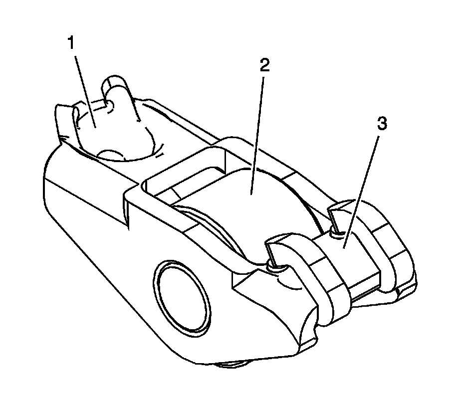 1. Apply a liberal amount of lubricant to the pivot pocket (1), roller (2) and valve slot (3) areas of the camshaft followers. Refer to Adhesives, Fluids, Lubricants, and Sealers Adhesives, Fluids, Lubricants, and Sealers for recommended lubricant.