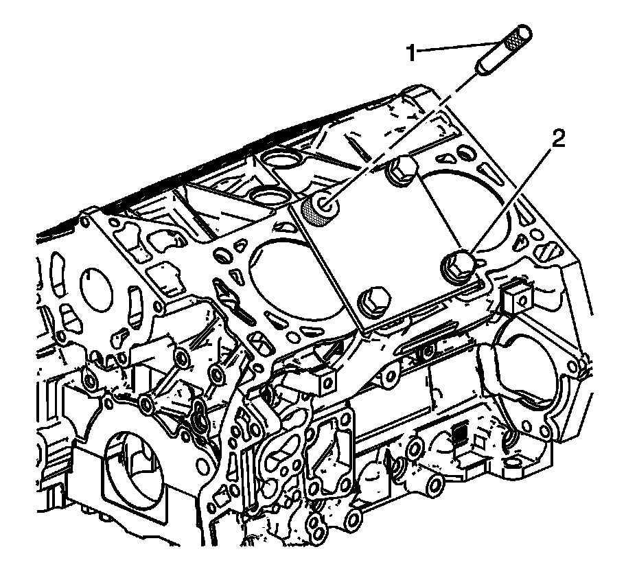 5. Remove the alignment pin (1) from the cylinder head bolt hole.