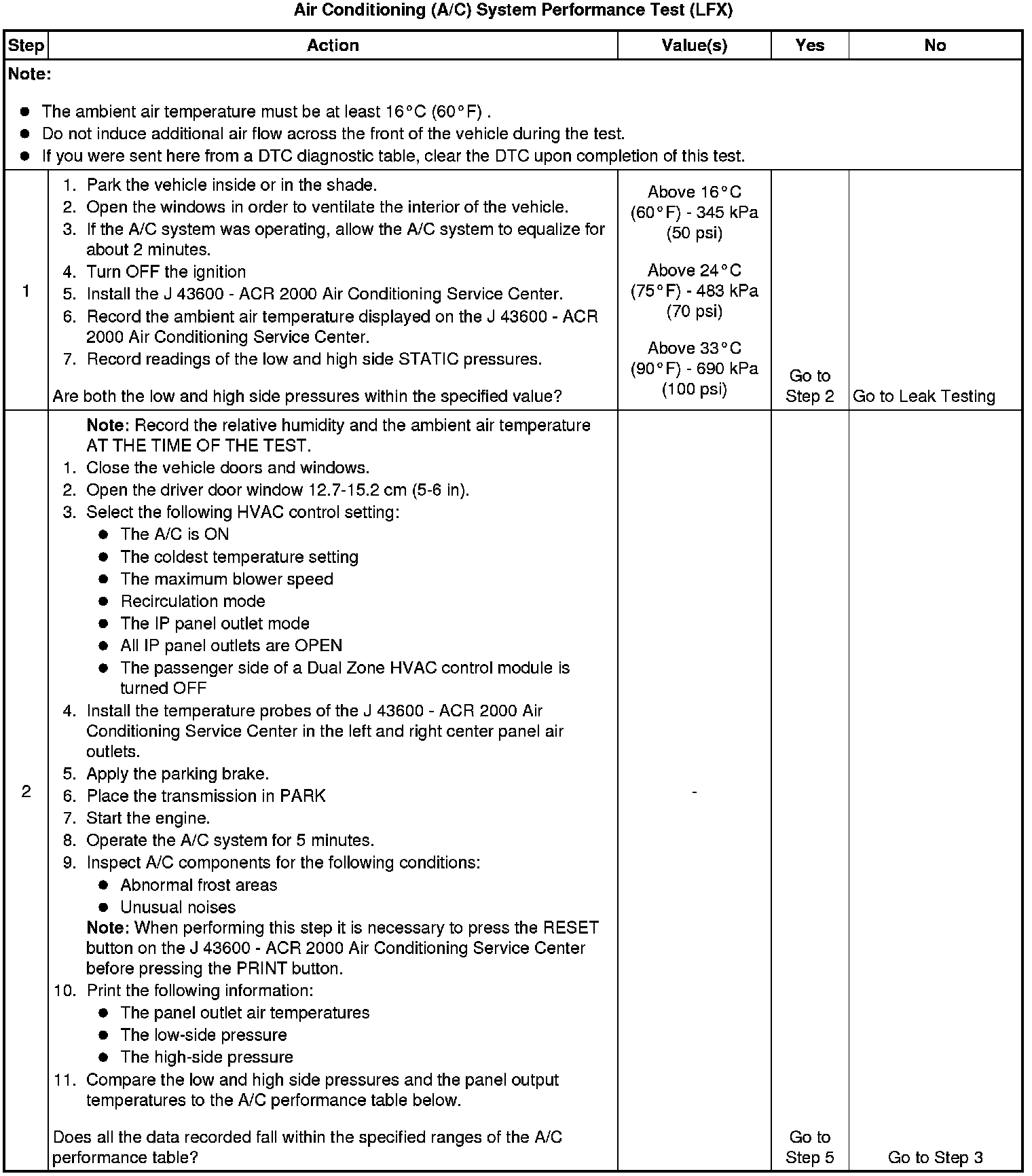 Air Conditioning (A/C) System Performance Test (LFX)